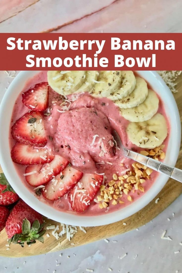 This strawberry banana smoothie bowl is thick, creamy, and such a healthy treat! It is vegan and you can add any toppings you like!